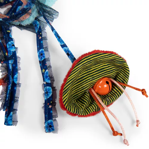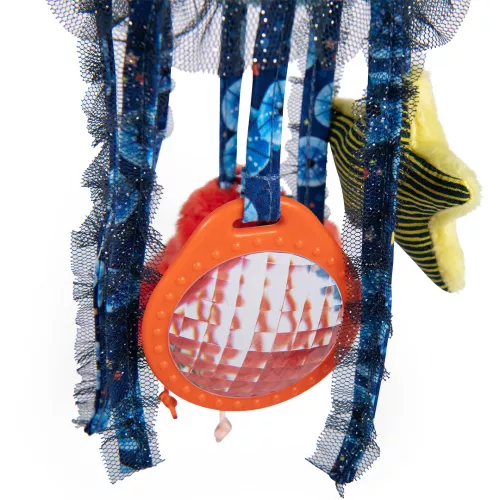 De kwallenknuffel is voorzien van een belletje, caleidoscoop en spiegel. Het spiegeltje op zijn buik glinstert en trekt de aandacht van ieder kleintje. Het babyspeelgoed bestaat uit verschillende materialen en texturen. Voor de kleine babyhanden is dat uiterst interessant om te ontdekken.Â