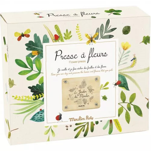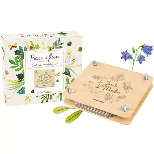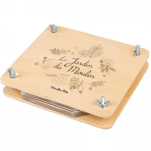 Een houten bloemenpers ‘Presse à Fleurs – Le jardin du Moulin’ van het Franse merk Moulin Roty voor kleine botanici, om mooie bloemetjes en blaadjes te drogen.