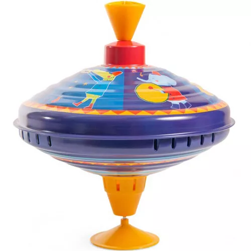 De draaitol werkt eenvoudig door het handvat snel omhoog en omlaag te duwen. Doe dit een paar keer om snelheid te creëren en zie hem dan ronddraaien om zijn as. Door het platte voetje, blijft de tol goed op zijn plek.