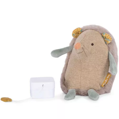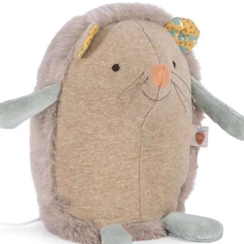 Dit muzikale knuffelegeltje uit de collectie ‘Trois Petits Lapins’ van het Franse merk Moulin Roty heeft een verrassing in de buik. Trek aan een okergeel blaadje en de egelknuffel neuriet zoete melodietjes.