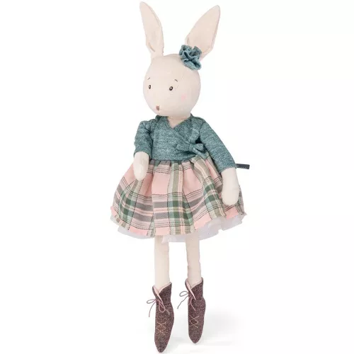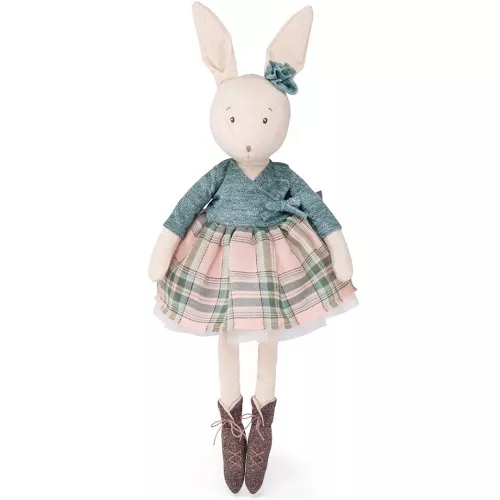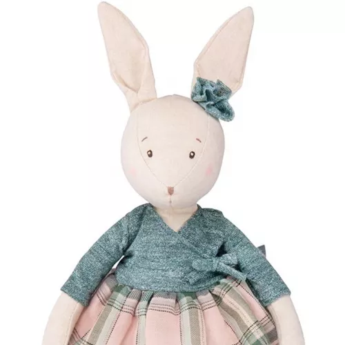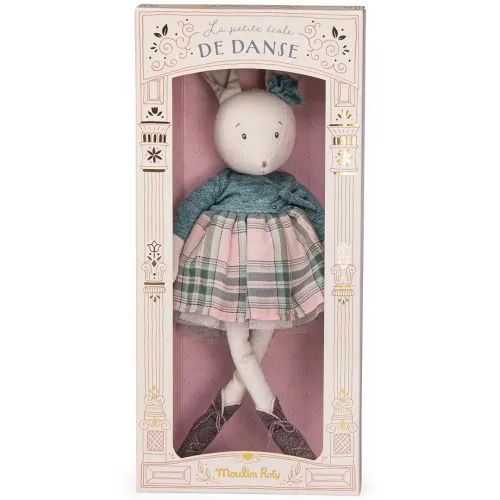 Dit onweerstaanbare knuffelkonijn Victorine is een danseres uit de collectie ‘La petite école de danse’ van het Franse merk Moulin Roty. De konijnenknuffel van chambray heeft een geborduurd snuitje en draagt een geruite rok met tule eronder.Â