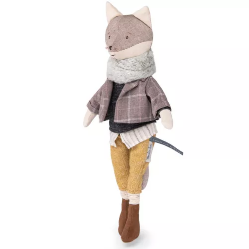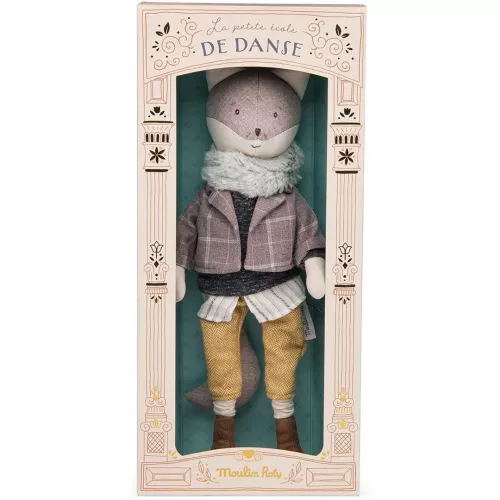 Justin is een elegante knuffelvos ‘Poupée Renard’ uit de collectie ‘La petite école de danse’ van het Franse merk Moulin Roty. De vossenknuffel van chambray en zachte snoet ziet er met zijn sjaal, jasje en stijlvolle broek uit om door een ringetje te halen.