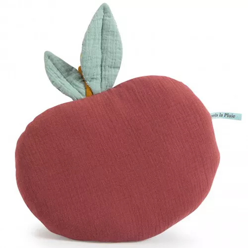 Het appelkussen uit de serie ‘Après la pluie’ van het Franse merk Moulin Roty is een speels en fruitig kinderkussen in de kinderkamer.