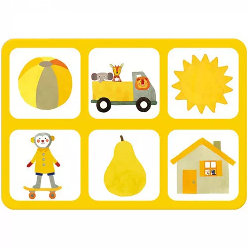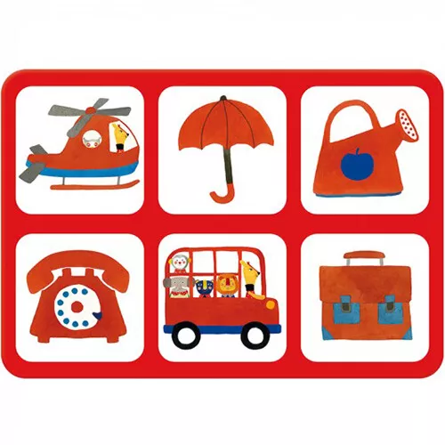 Wie heeft als eerst alle voorwerpen gevonden? Een bingospel met sprekende kleuren ‘Colours Lotto Game – Les Popipop’ van het Franse merk Moulin Roty.