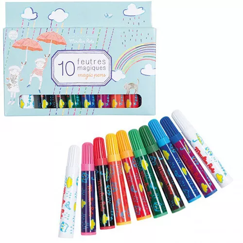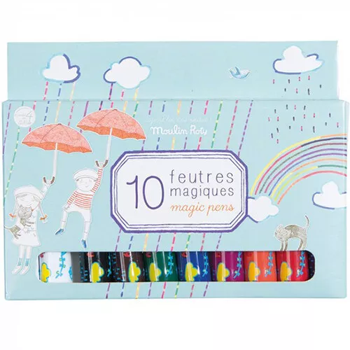 Perfect om alle creatieve fantasieën op papier te zetten. Deze magische viltstiftenset van het Franse merk Moulin Roty bevat 10 viltstiften speciaal ontworpen voor jonge kinderen.Â