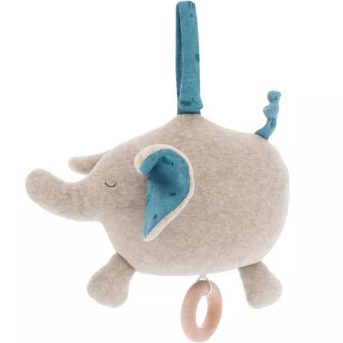 Dit muziekdoosje met olifantje uit de serie ‘Sous Mon Baobab’ van het Franse merk Moulin Roty laat de kleine baby heerlijk in slaap vallen bij een zacht, rustgevend melodietje. Trek aan het houten ringetje en de muziek doet zijn werk.