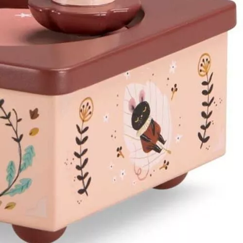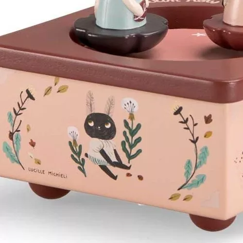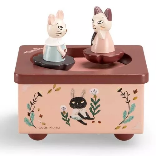 Een muziekdoosje met lieflijke illustraties van de diertjes uit de serie ‘Après la pluie’ van het Franse merk Moulin Roty.Â