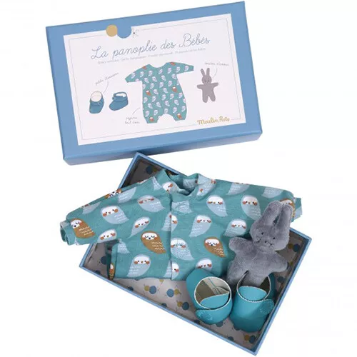 Voor een comfortabele nachtrust is er deze behaaglijke poppenpyjama voor de Les Bébés lappenpop van het Franse merk Moulin Roty.