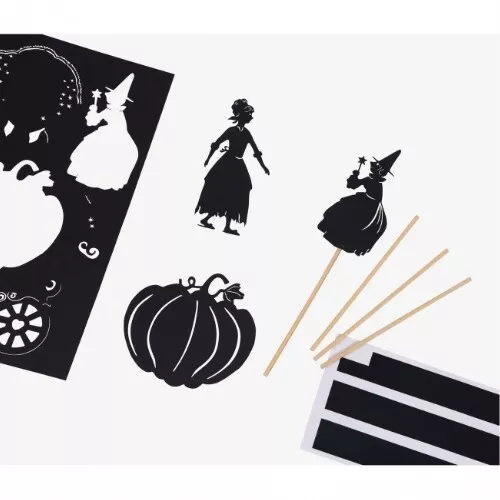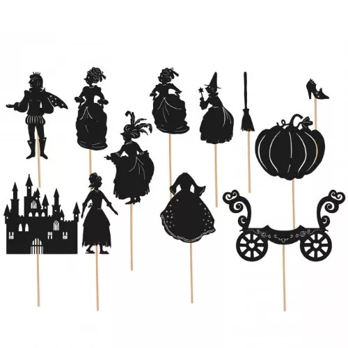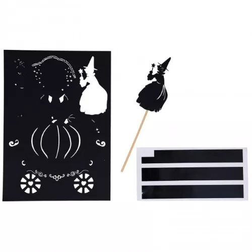Met de schaduwpoppetjes kunnen kinderen hun eigen draai geven aan het klassieke sprookje Assepoester. Het kartonnen poppentheater vormt hierbij een betoverend podium.