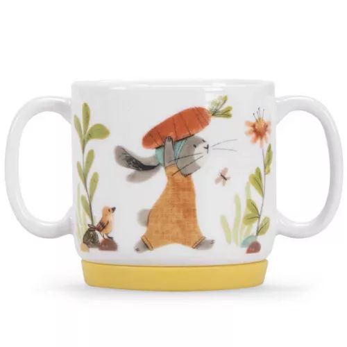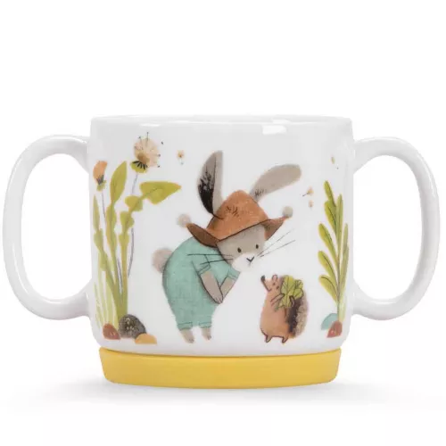De mok heeft twee grote oren, zodat het goed vast te houden is met kleine kinderhandjes. De mok, kom en het bord hebben details van siliconen aan de onderkant, zo hebben ze houvast op de tafel.