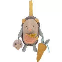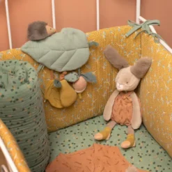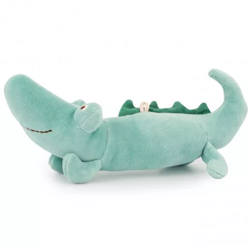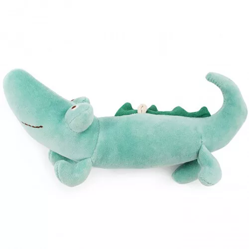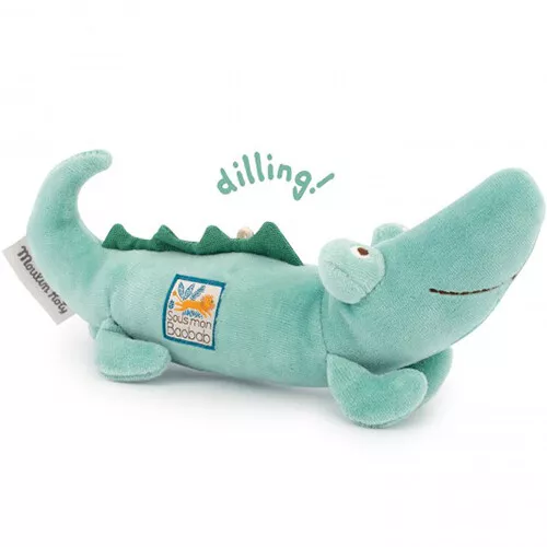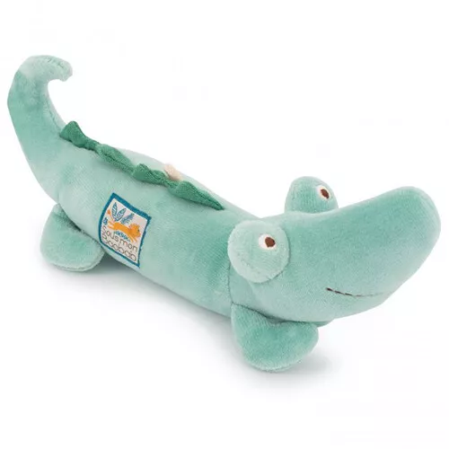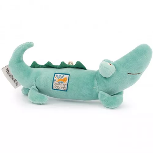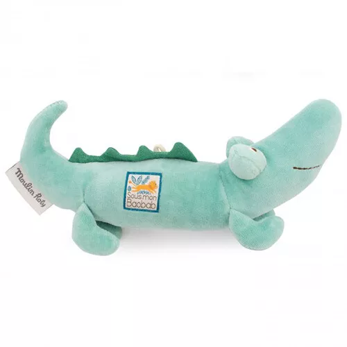 Entertain de kleine baby met de stoffen rammelaar ‘Crocodile rattle’ uit de collectie ‘Sous Mon Baobab’ van het Franse merk Moulin Roty. De knuffelrammelaar is gevuld met kralen. Verrassend babyspeelgoed dat het gehoor stimuleert en baby’s aanmoedigt om voorwerpen te pakken.