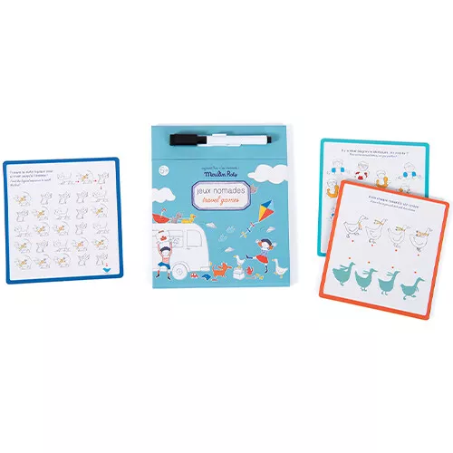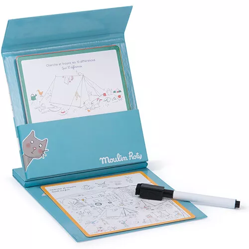 Een lange trein- of autorit voor de boeg? Deze compacte spelletjesset uit de ‘Aujourd’hui C’est Mercredi’ serie van het Franse merk Moulin Roty biedt genoeg vermaak voor onderweg of op vakantie.Â