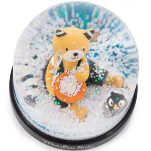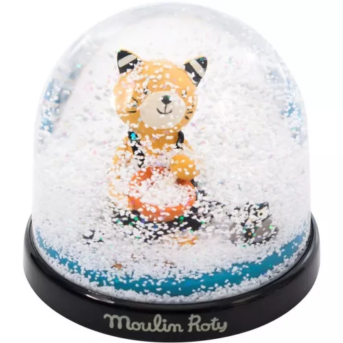 Een vrolijke sneeuwbol ‘Boule à Neige’ uit de serie ‘Les Moustaches’ van het Franse merk Moulin Roty.