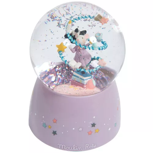 Een muzikale sneeuwbol vol glitters ‘Il était une fois’ van het Franse merk Moulin Roty voor de kinderkamer, het nachtkastje of op het bureau. Dit muziekdoosje speelt een zacht melodietje.