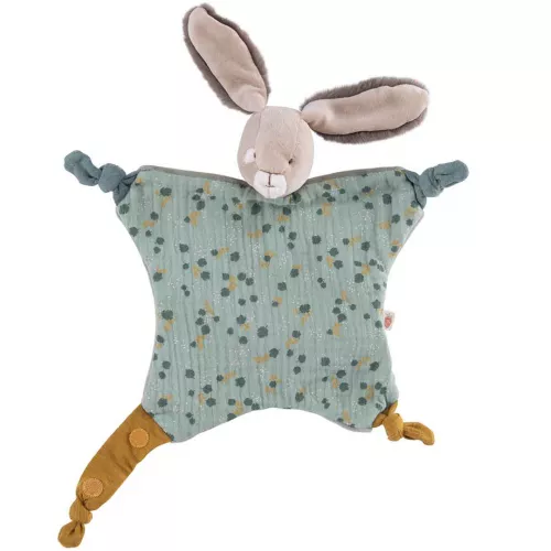 Het babydoekje met konijnenknuffeltje voelt prettig aan en geeft houvast. Aan het lieflijke knuffeldoekje kan een speen worden bevestigd waardoor het ook fungeert als speendoek. In de hoeken van de doek zijn knopen gelegd die uitnodigen tot aanraking door onderzoekende handjes.