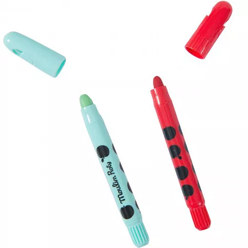 Dankzij de huls om het waskrijtjeĀ blijven de handjesĀ mooi schoon. Draai aan het wieltje aan de onderkant van de pen en het krijtje komt omhoog.