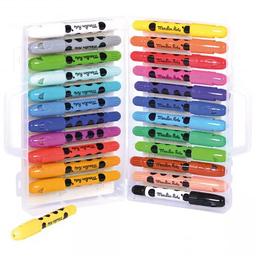 Maak de mooiste tekeningen met deze waskrijtjes met kunststof huls ‘Box of 24 Wax Crayons – Les Popipop’ van het Franse merk Moulin Roty. Met 24 kleurenĀ om alle creatieve fantasieĆ«n op papier te zetten.